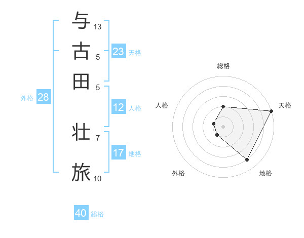 与古田 壮旅さんの天格は23画の5点!