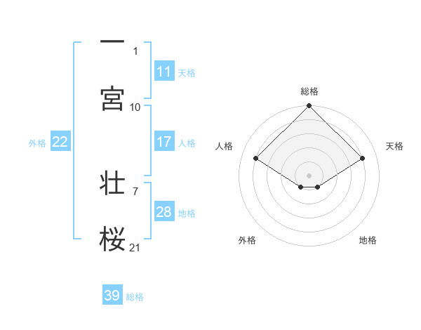 一宮 壮桜さんの外格は22画の1点!