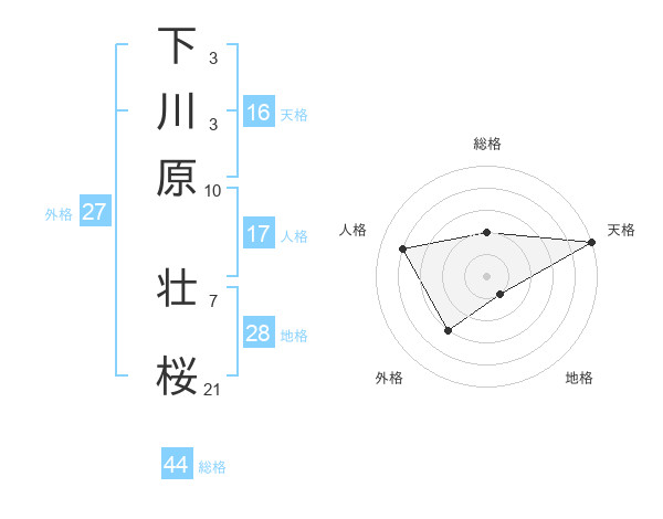 下川原 壮桜さんを姓名の画数から五運を鑑定