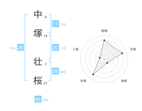 中塚 壮桜さんを姓名の画数から五運を鑑定