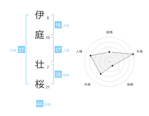 伊庭 壮桜さんの天格は16画の5点!
