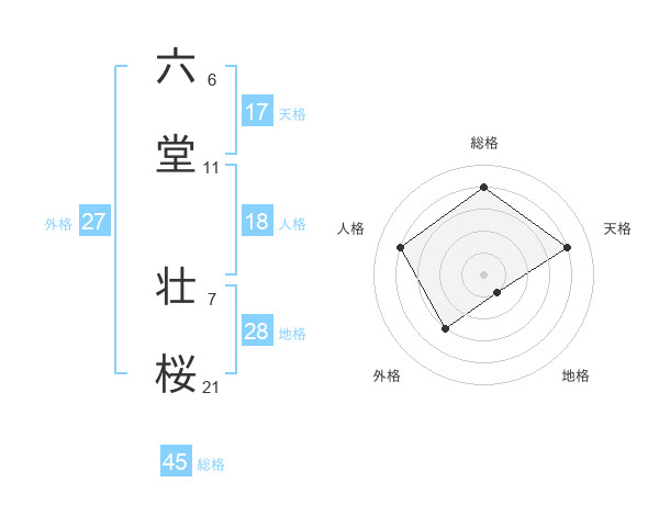 六堂 壮桜さんを姓名の画数から五運を鑑定