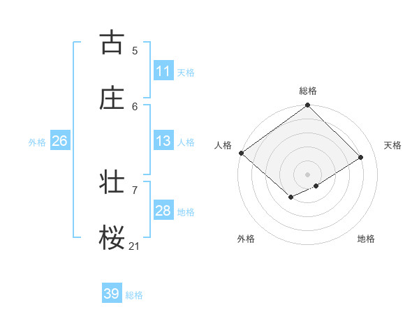 古庄 壮桜さんの総格は39画の5点!