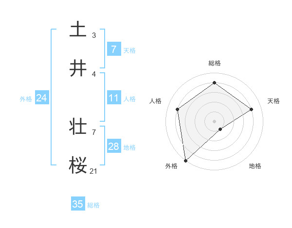 土井 壮桜さんの総格は35画の4点!