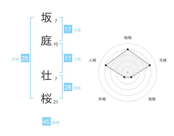 坂庭 壮桜さんの天格は17画の4点!