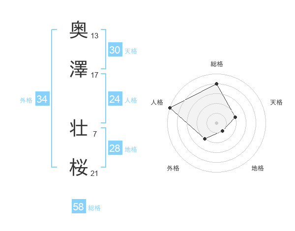 奥澤 壮桜さんの天格は30画の2点!