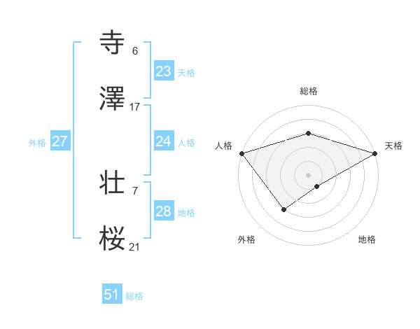 寺澤 壮桜さんの総格は51画の3点!