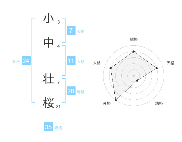 小中 壮桜さんを姓名の画数から五運を鑑定