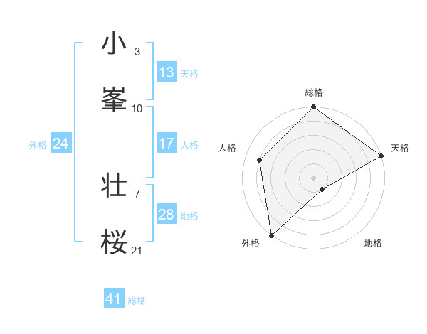 小峯 壮桜さんを姓名の画数から五運を鑑定