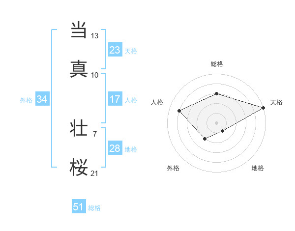当真 壮桜さんを姓名の画数から五運を鑑定