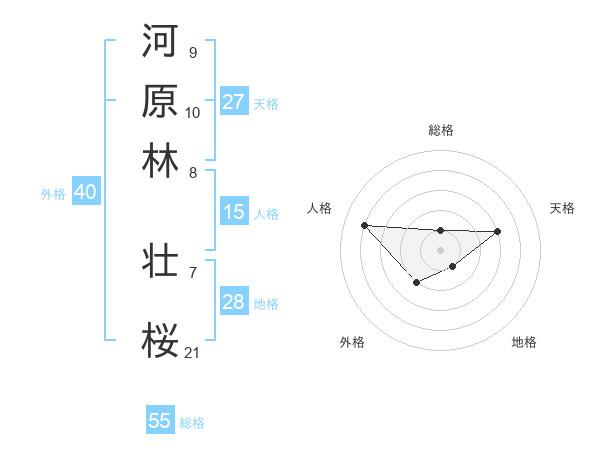 河原林 壮桜さんを姓名の画数から五運を鑑定