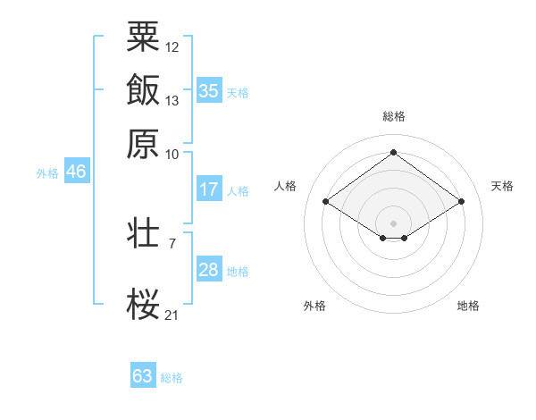 粟飯原 壮桜さんを姓名の画数から五運を鑑定