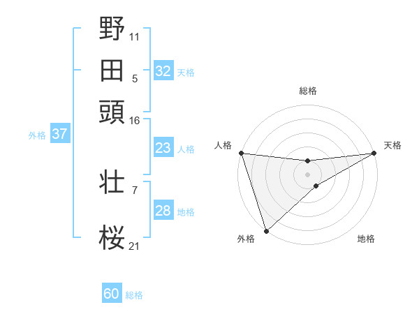 野田頭 壮桜さんを姓名の画数から五運を鑑定