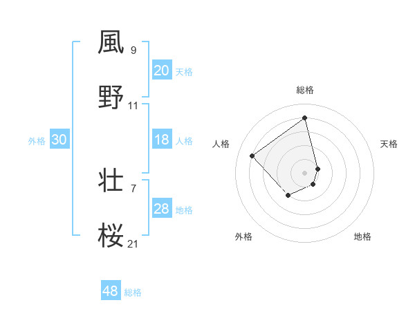 風野 壮桜さんを姓名の画数から五運を鑑定