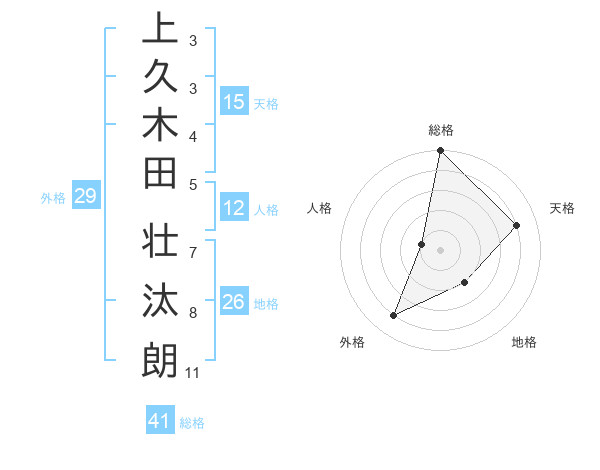 上久木田 壮汰朗さんを姓名の画数から五運を鑑定