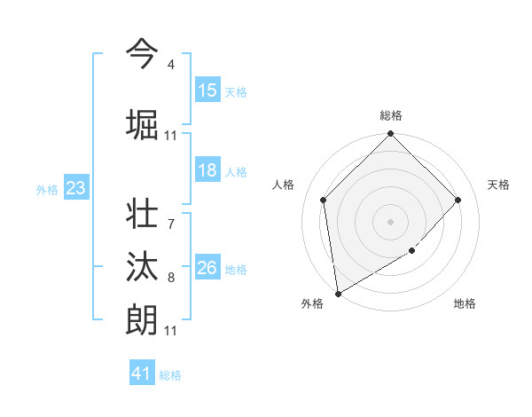 今堀 壮汰朗さんの天格は15画の4点!