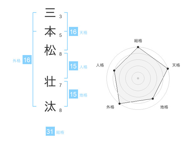 三本松 壮汰さんを姓名の画数から五運を鑑定