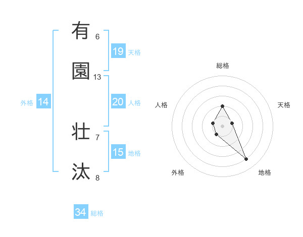有園 壮汰さんを姓名の画数から五運を鑑定