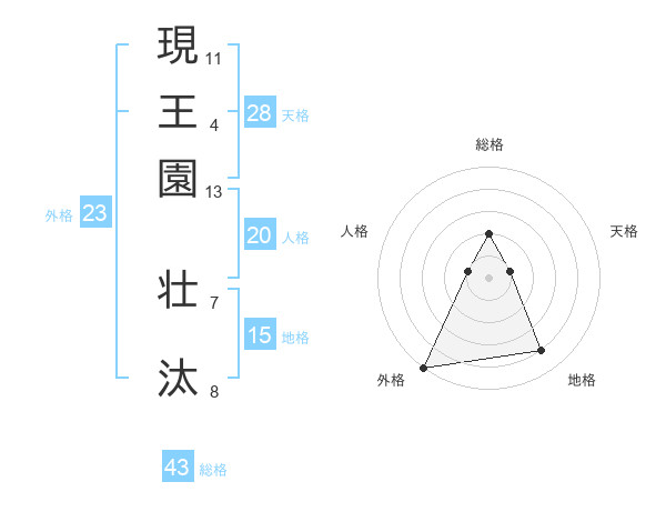 現王園 壮汰さんを姓名の画数から五運を鑑定