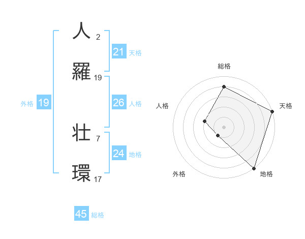 人羅 壮環さんを姓名の画数から五運を鑑定