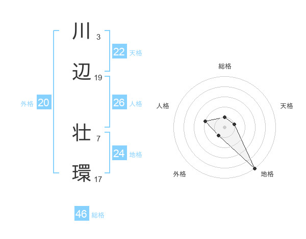 川辺 壮環さんの総格は46画の1点!