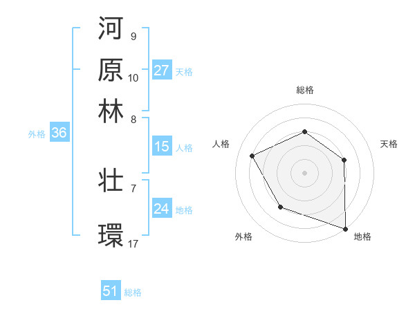 河原林 壮環さんを姓名の画数から五運を鑑定