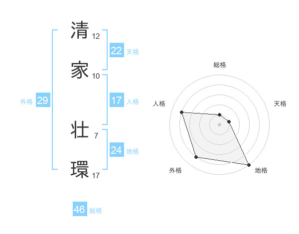 清家 壮環さんの地格は24画の5点!