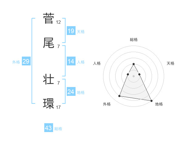 菅尾 壮環さんの総格は43画の2点!