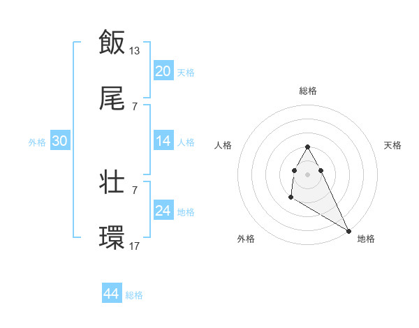 飯尾 壮環さんの総格は44画の2点!