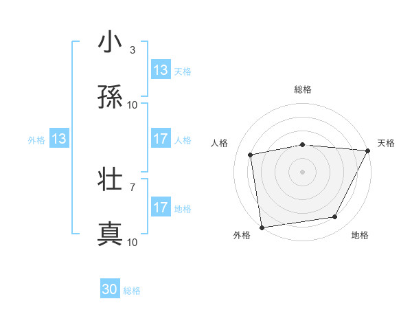 小孫 壮真さんの天格は13画の5点!