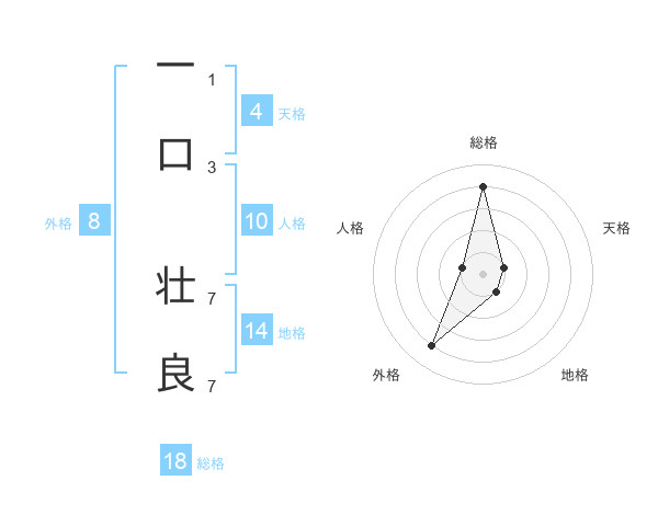 一口 壮良さんの総格は18画の4点!
