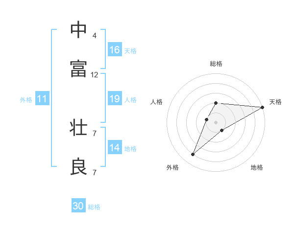 中富 壮良さんの天格は16画の5点!