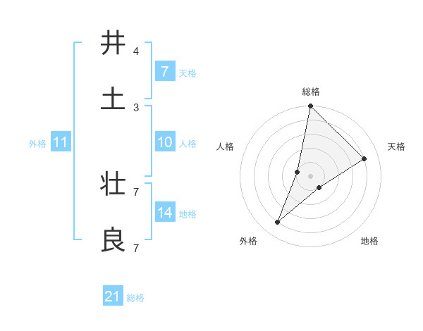 井土 壮良さんの総格は21画の5点!