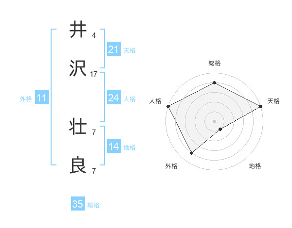 井沢 壮良さんの総格は35画の4点!