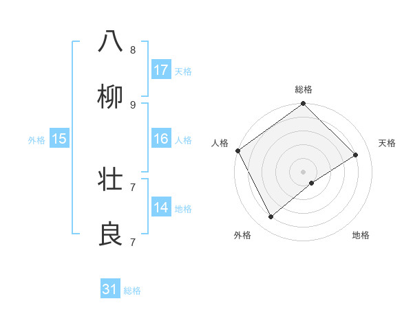 八柳 壮良さんの天格は17画の4点!