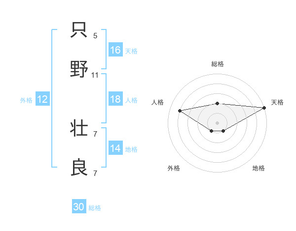 只野 壮良さんの天格は16画の5点!