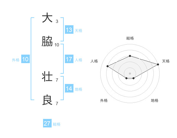 大脇 壮良さんの総格は27画の3点!