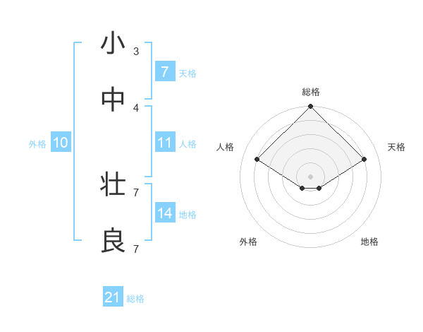小中 壮良さんの総格は21画の5点!
