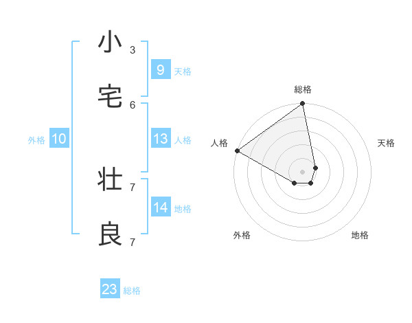 小宅 壮良さんの総格は23画の5点!