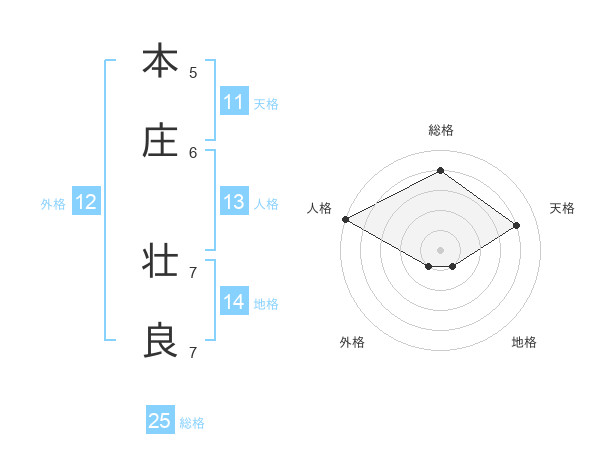 本庄 壮良さんの総格は25画の4点!