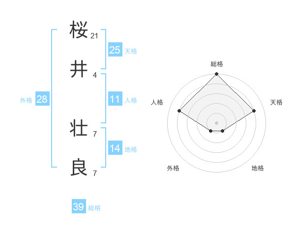桜井 壮良さんの総格は39画の5点!