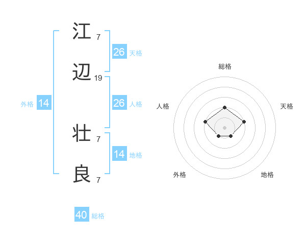 江辺 壮良さんの総格は40画の2点!
