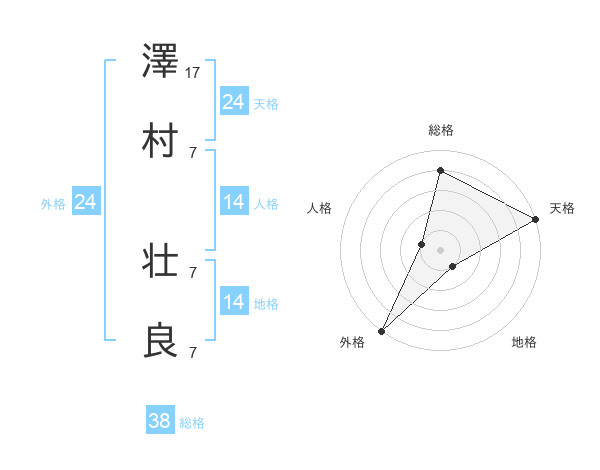 澤村 壮良さんの天格は24画の5点!