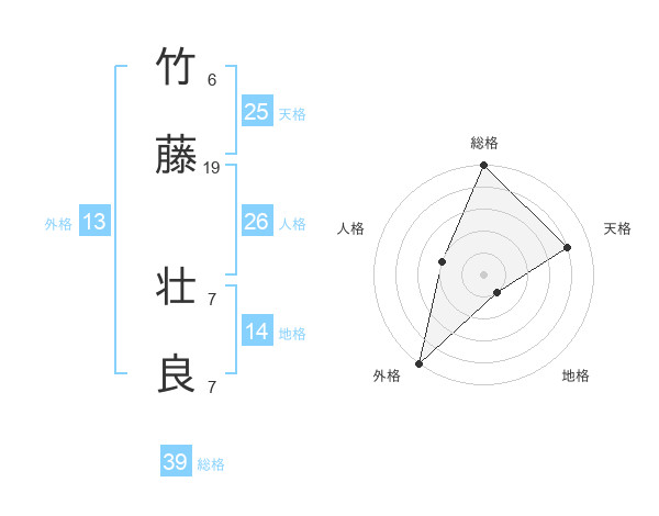 竹藤 壮良さんの総格は39画の5点!