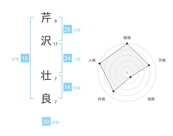 芹沢 壮良さんを姓名の画数から五運を鑑定