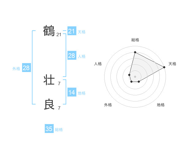 鶴 壮良さんの天格は21画の5点!