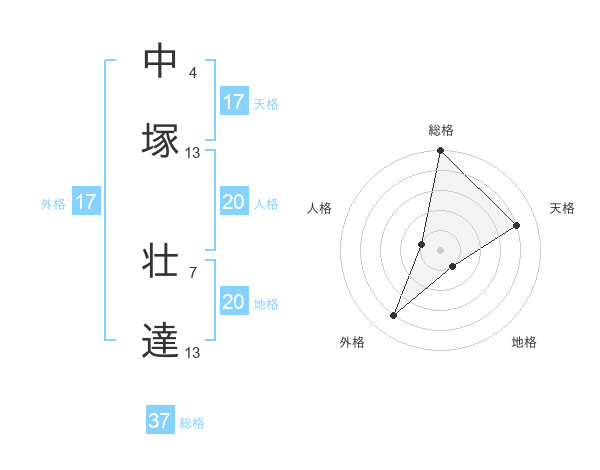 中塚 壮達さんを姓名の画数から五運を鑑定