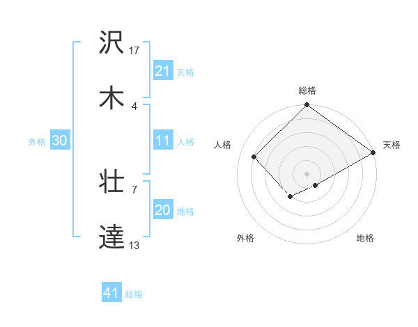 沢木 壮達さんの天格は21画の5点!