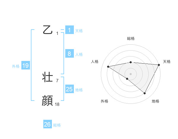 乙 壮顔さんの総格は26画の2点!