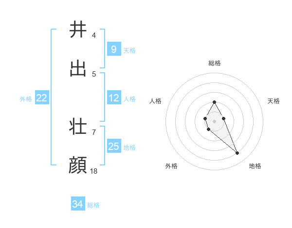 井出 壮顔さんの総格は34画の2点!